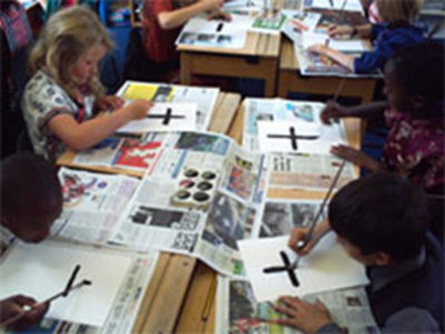 The volunteers spent the first half-hour with year 3, learning Japanese numbers through word association and actions (where 'ichi' is 'itchy' and the children scratch their arms as they say it). We all then played bingo in Japanese. Following this, Rie & Chika spent 30 minutes with year 2, then Reception and Year 1, where they taught the pupils to say 'konnichiwa' and read a story about a zoo. They learnt different animals' Japanese names, and the sounds they make in Japanese (a pig in Japan says 'buu buu'!) The children practiced saying 'konnichiwa' and bowing to each other. Later in the day, Chika & Rie also spent time with year 5 and year 6, showing them Japanese calligraphy. The pupils learned about the 3 Japanese alphabets, and picked the different letters out in Japanese newspapers. They then drew pictures of trees and rivers, and tried to find the correct kanji characters from a poster. Once they had correctly located 木 and 川 they practiced painting them, copying Chika's stroke order from the white board.