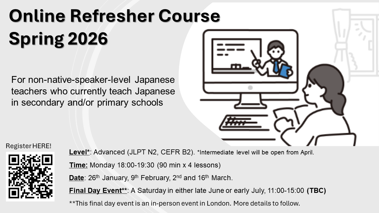 • More detailed information will be given later. Teachers of all Japanese levels are welcome. Applications for the Final Day event will open closer to the date.