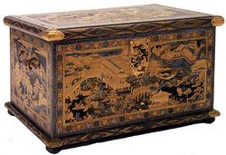Following on from the seminar held in June 2005, the Japan Foundation is pleased to announce that it is now possible to follow the progress of the conservation project on the Victoria and Albert Museum’s website. The Mazarin Chest is the finest example of Japanese export lacquer to have survived from the late 1630s and restoration work began in April 2005, using a combination of western and Japanese techniques. Cleaning of the lacquer will be followed by consolidation of the chest’s lavish pictorial decoration, which includes scenes from the Tale of Genji and the Tale of the Soga Brothers.