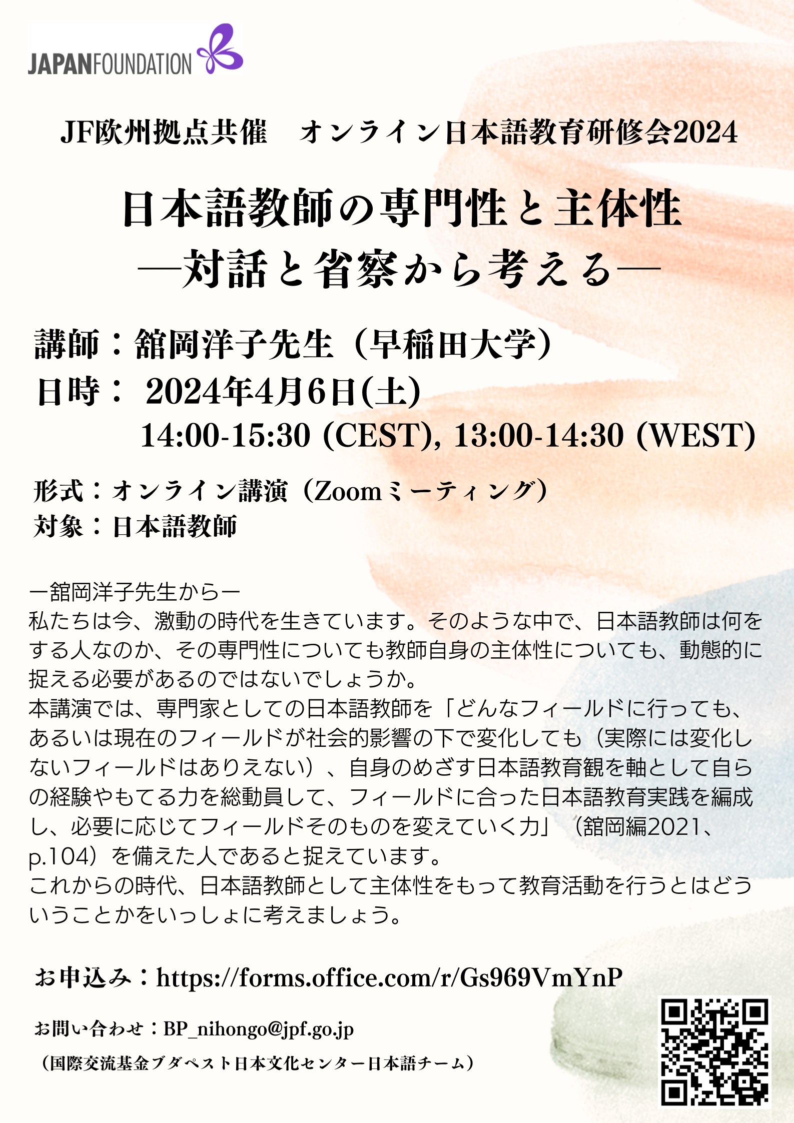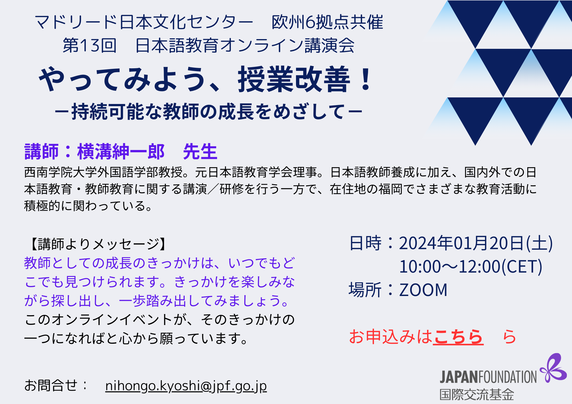 14.00 - 14.30 Japan Foundation: Informative session about educational initiatives and upcoming events