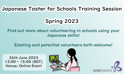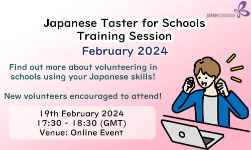 To empower and encourage volunteers, we will be holding an online training session on 9th September 2024. We will provide information about the JTS programme and there will be a talk given by an experienced teacher of Japanese, Ms Clare Kuroishi. There will also be a chance to ask us questions, speak to other volunteers, and a fun quiz that will test your Japanese language volunteer knowledge!