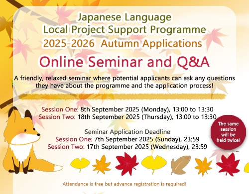 - Applicant Criteria: Japanese language educators in the United Kingdom and Europe. Please note that this course content is based on the previous course which was held between November 2020 and March 2021 - therefore, new applicants will be prioritised.
